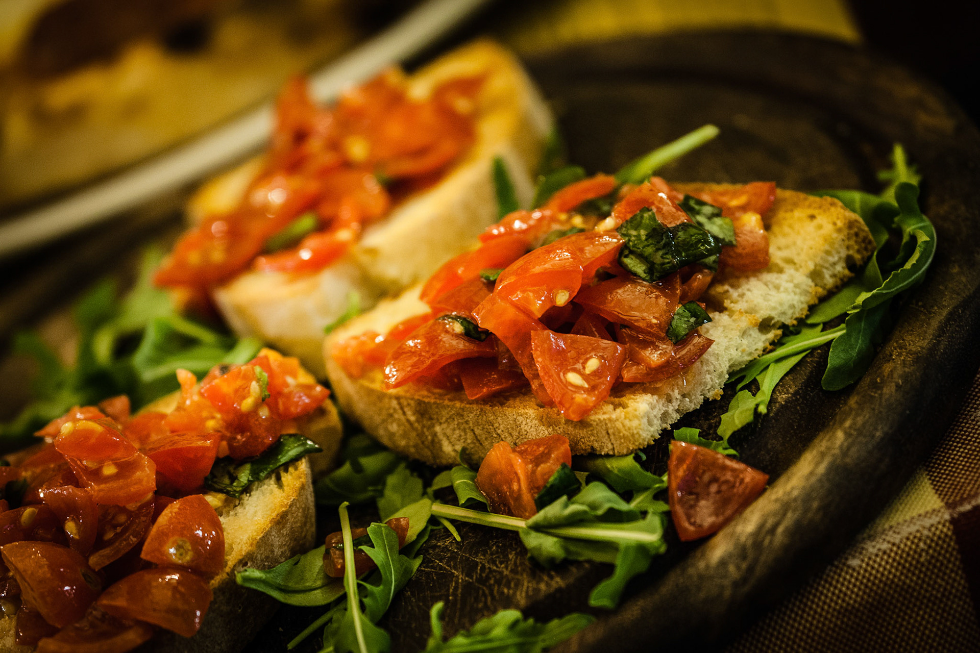 italian bruschetta with fresh tomatoes, basil, garlic, olive oil and cheese